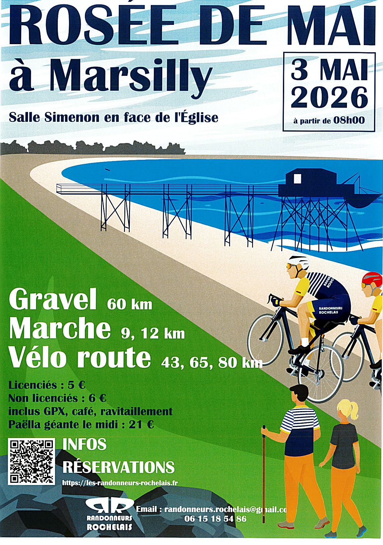 Les Randonneurs Rochelais vous invitent à participer à La Rosée de Mai, le 3 mai ! Que vous soyez amateur de gravel, de marche ou de vélo de route, venez profiter d’un moment convivial dans une ambiance chaleureuse et accessible à tous. Le départ se fera depuis la salle Simenon à 8h, pour une belle…