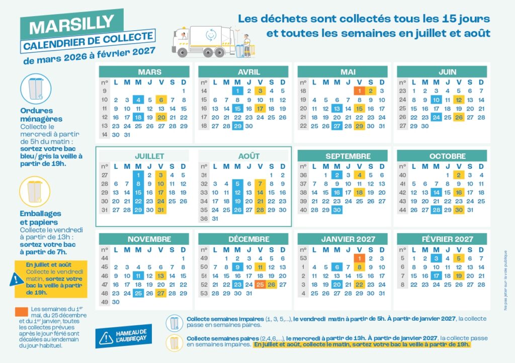 Les calendriers actualisés seront distribués dans toutes les boîtes aux lettres entre le 12 janvier et le 20 février prochain. Ils sont valables à partir de mars 2026.