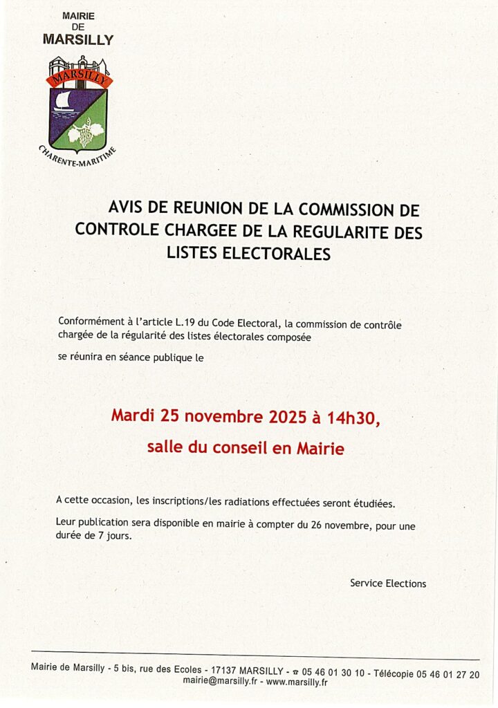 Avis de réunion de la commission de contrôle chargée de la régularité des listes électorales